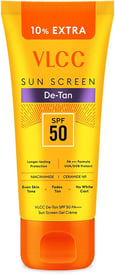 VLCC De-Tan SPF 50 PA+++ Sunscreen Gel Crème – Lightweight Non-Greasy Gel with Cucumber, Carrot & Aloe for Tan Reduction (100 g)