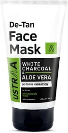 Ustraa De-Tan Face Mask - Dry Skin - 125 gm - Wash-off mask for cleaning dry skin with White Charcoal, No Paraben, Removes dead skin & pollution, De-tan face mask - 125g